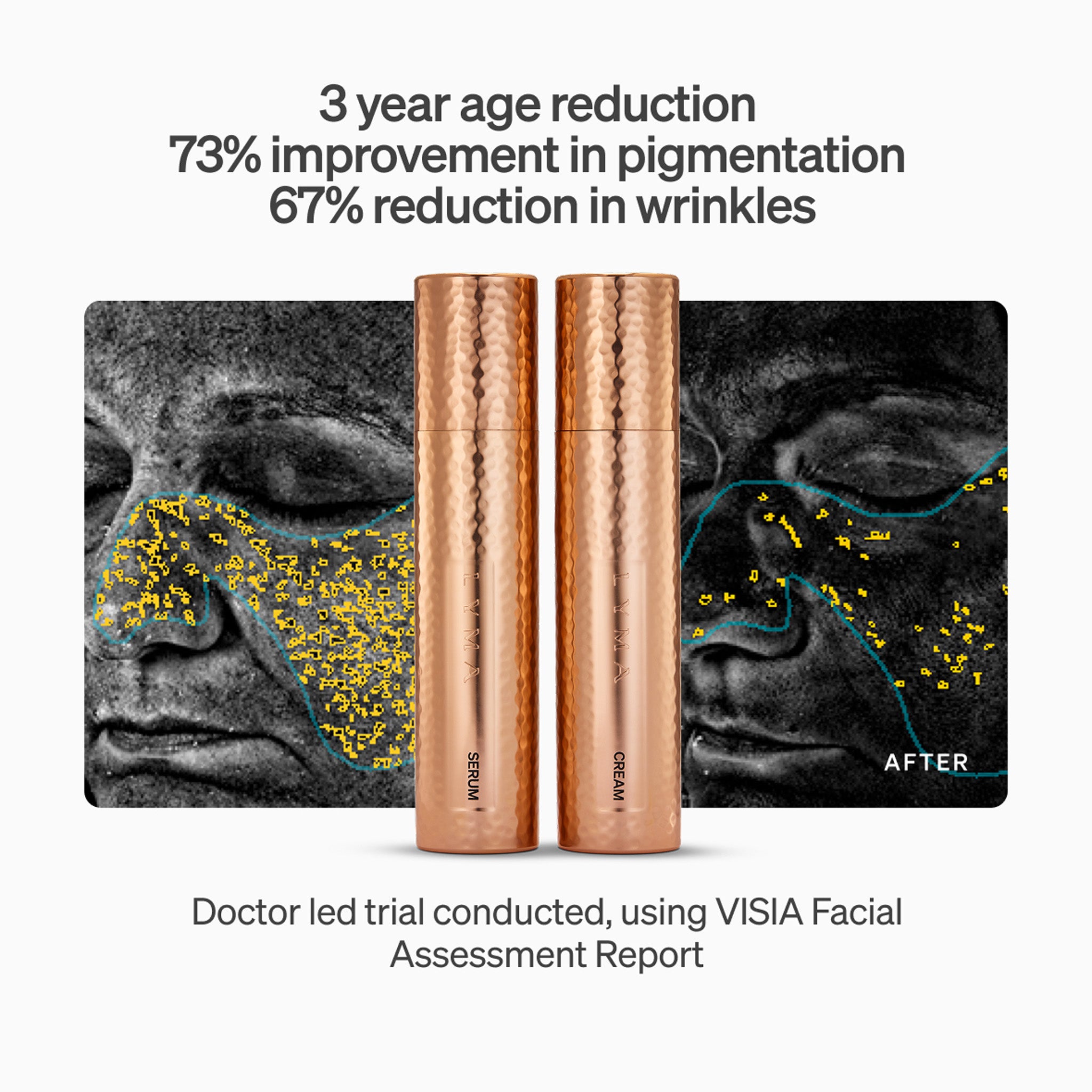 - Informed by epigenetic skin science. A new era in daily dermatology - Highly active Serum and Cream, engineered to tackle the eight mechanisms of skin ageing - Increased hydration in the epidermis, less visible pores and smoother, more vibrant looking skin in just 30 days - Engineered to maximise the results of the LYMA Laser - Starter Kit includes refillable copper vessels and 50ml LYMA Serum and 50ml LYMA Cream